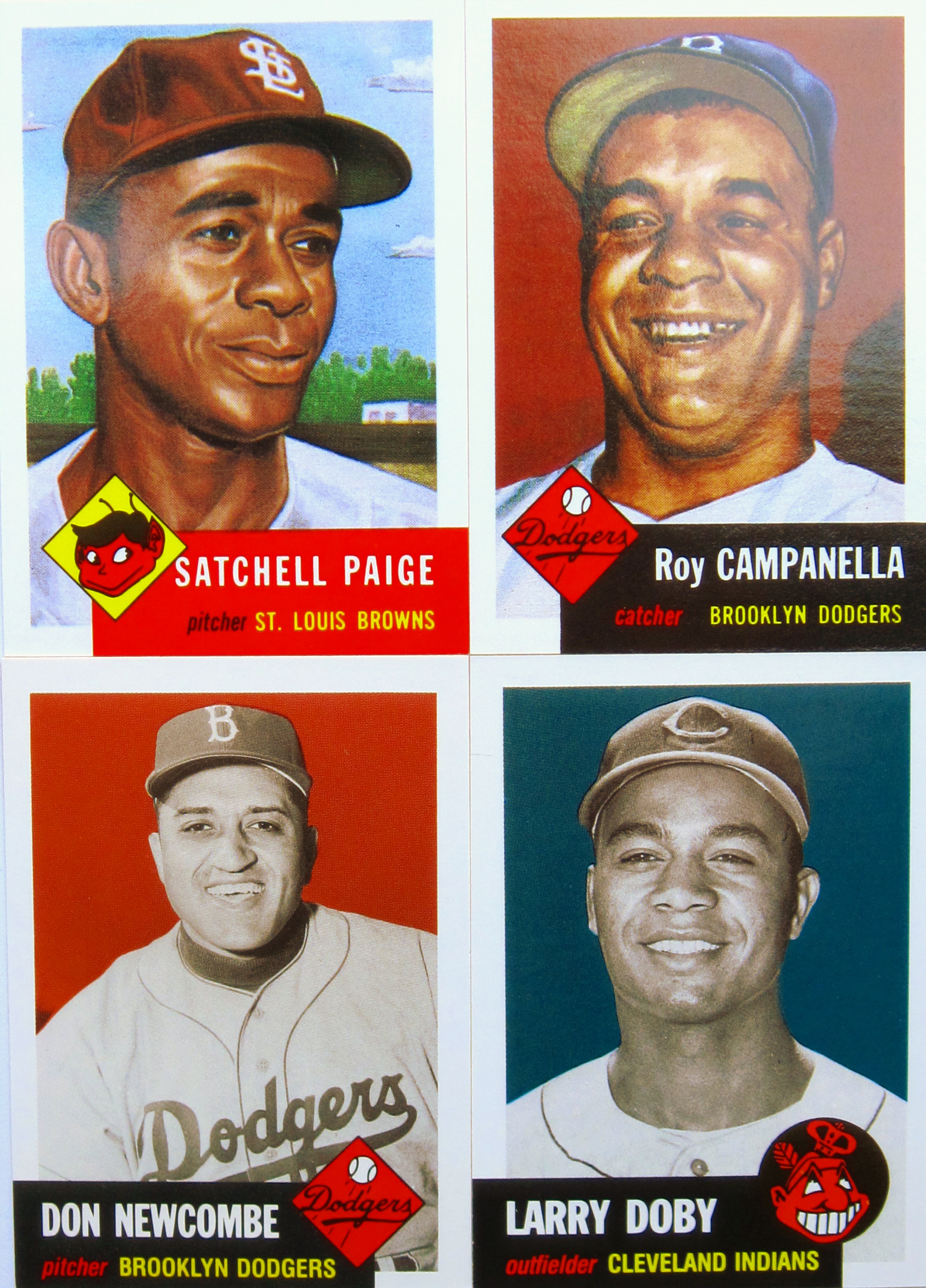 P.S.: The five baseball cards shown in this post were issued in 1991 by the Topps Trading Card Company as part of a reissue set called: Topps Baseball Archives – The Ultimate 1953 Series. The Don Newcombe and Larry Doby cards were part of a subset of that series: “The Cards That Never Were.”