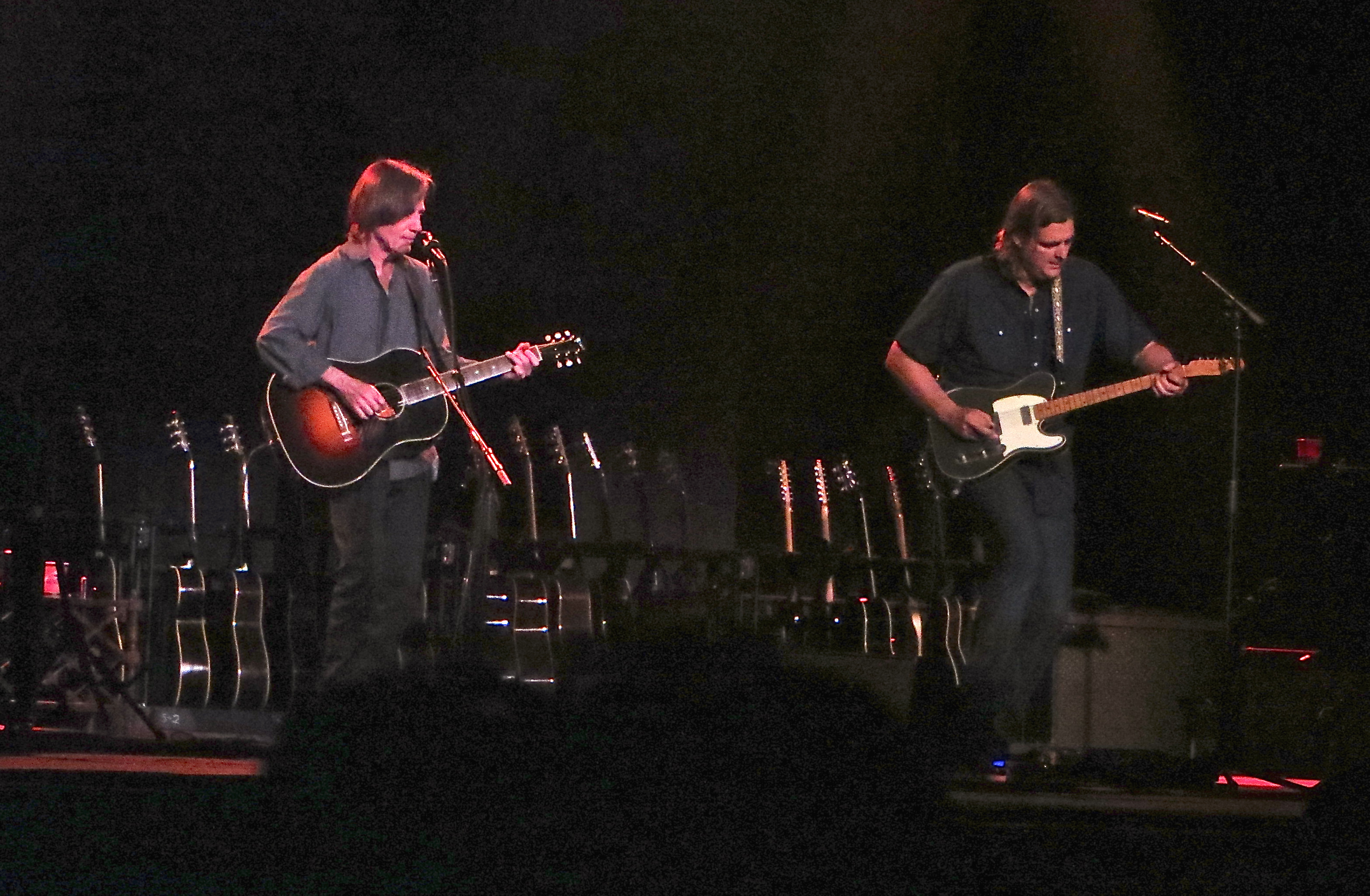 This summer, on Tuesday, August 19, my wife and I attended the Concord, New Hampshire stop of Jackson Browne’s “2014 Solo Acoustic Tour.” Not long into the second set, Jackson fingerpicked the distinctive introduction of “These Days” on a small body, sunburst Gibson acoustic guitar. (This was one of 23 guitars – and a piano – that Jackson had on stage with him for that evening’s concert.) The gorgeous performance of “These Days” that he gave for us that evening was almost exactly like the “Solo Acoustic, Vol. 1” recording above. One difference was the addition of the brilliant electric lead guitar work of Val McCallum, Jackson’s “surprise” accompanist for the evening. (Val brought 6 guitars.)