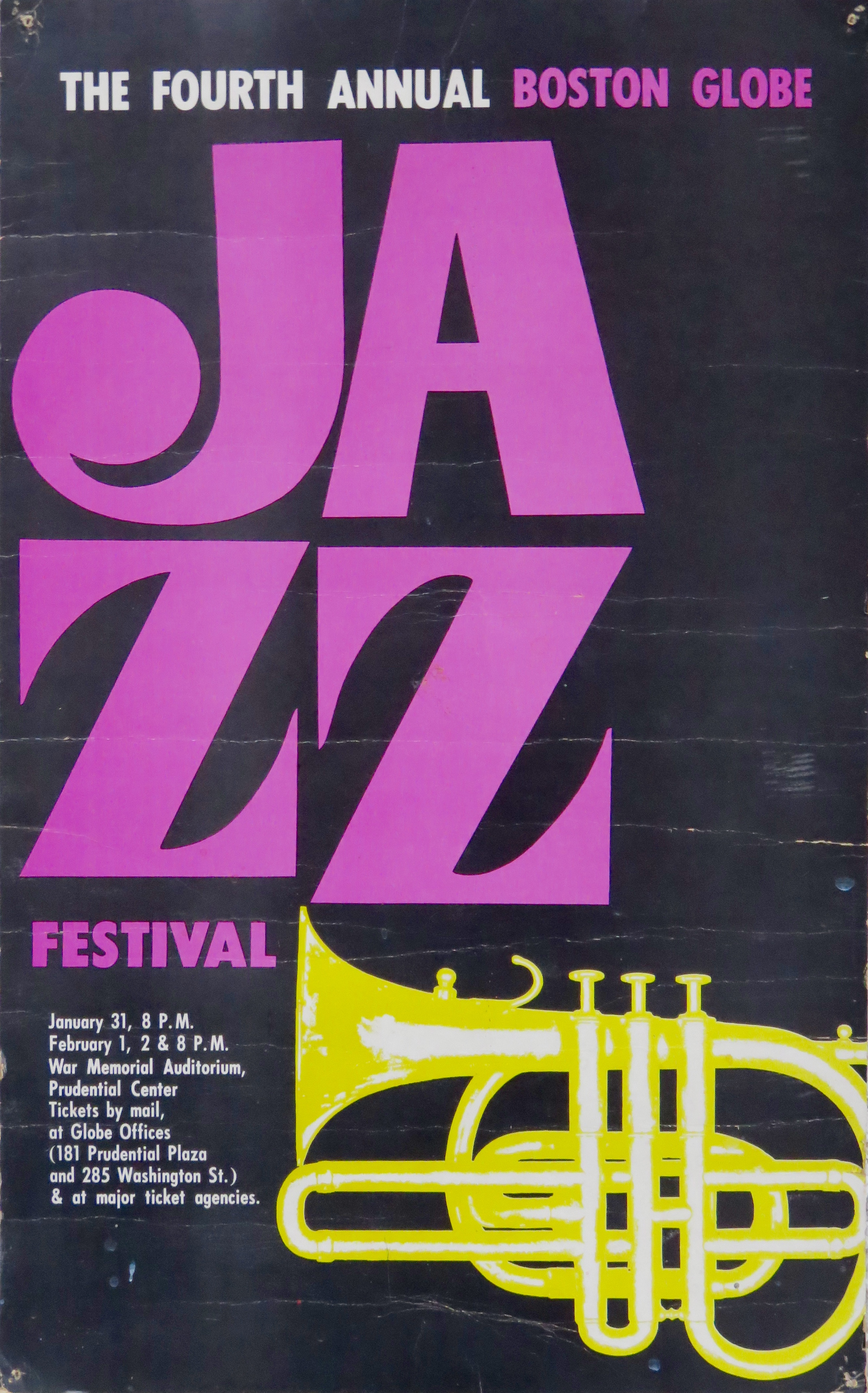 The 4th Annual Boston Globe Jazz Festival was held the weekend of January 31 and February 1, 1969. The festival’s venue was the War Memorial Auditorium in the Prudential Center on Boylston Street in downtown Boston, Massachusetts. (Tickets were $5.50, $4.50 and $3.50.)