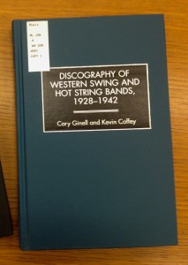 The book was called: Discography Of Western Swing And Hot String Bands, 1928-1942 by Cary Ginell and Kevin Coffey. It had been published in 2001.