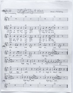 Years later, being unable to find a published transcription of “Eight Days A Week” in the key of G, I wrote out a lead sheet of my own.
