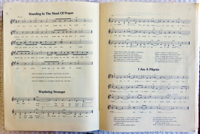 “Wayfaring Stranger” resides in the Gospel section, sharing pages 76 & 77 with two other classics.
