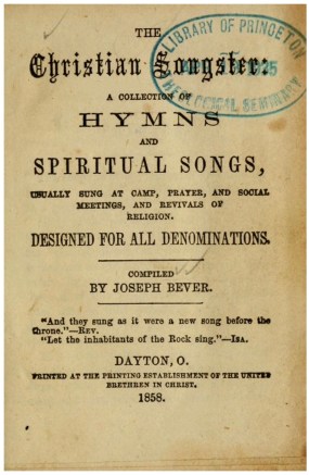 The earliest publication that Mr. Garst found of the text of the song was under the title of “Going Over Jordan” in a 1858 book by Joseph Bever called The Christian Songster.