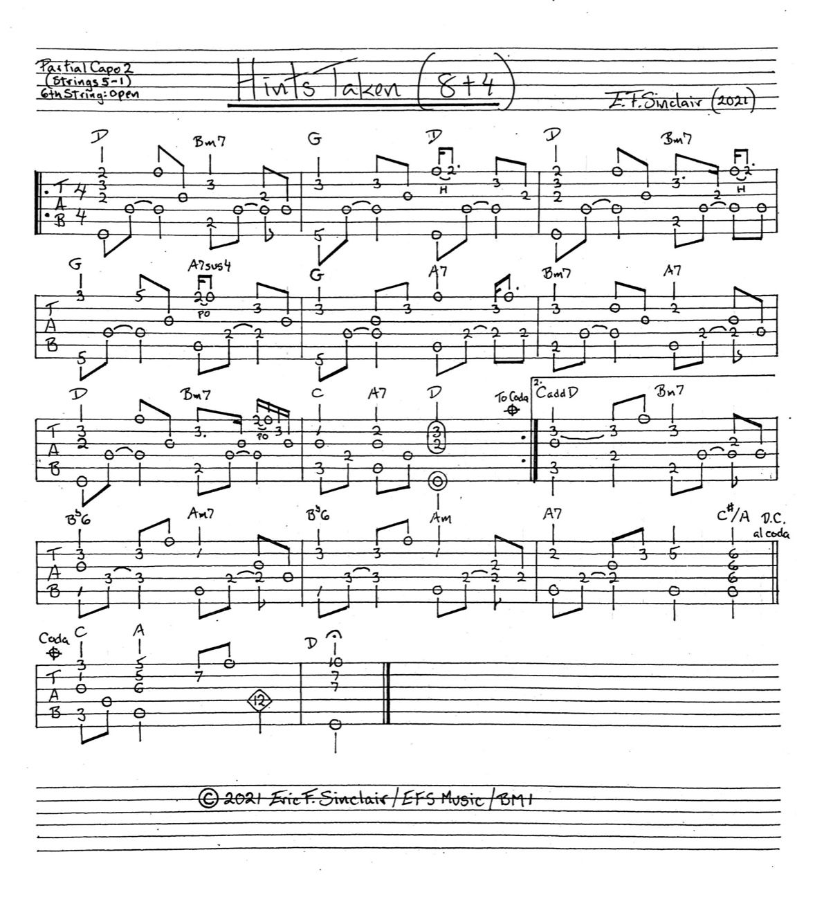 The following Friday – March 12 – I decided that my new (now harmonized) 8-bar composition needed a “B section.” Inspiration struck just as I was heading to bed and an initial 4-bar creation came to somewhat drowsy life on my guitar.