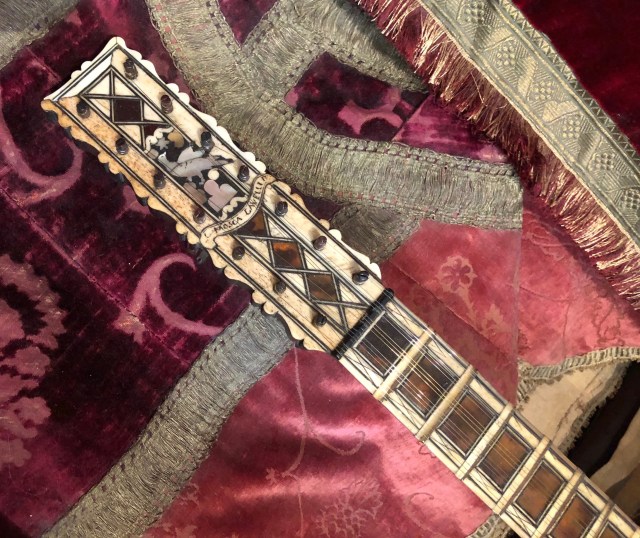 Since there are no object labels at the ISGM, I had to consult the museum’s website to find out about this fascinating instrument. From there, I learned much. First and foremost, I learned that it is properly known as a Chitarra Battente or “strumming guitar.”
